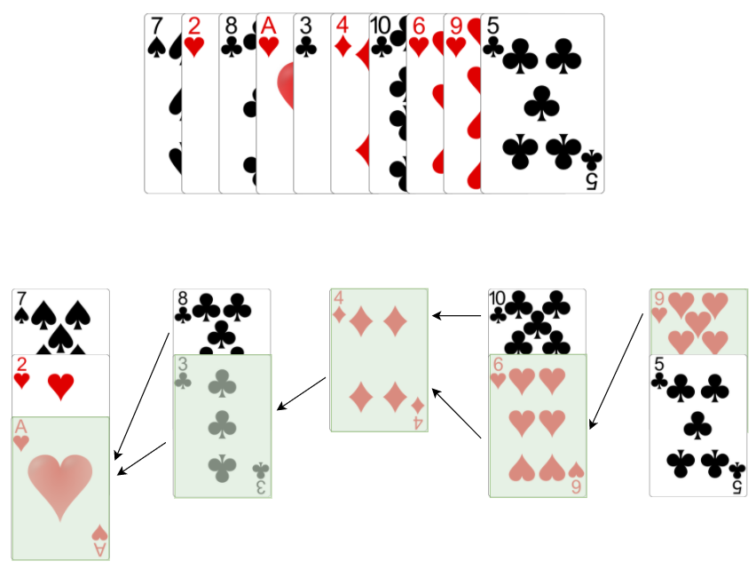 The algorithm we will use is called Patience Sorting which is inspired by the card game patience. The concept is straightforward.
