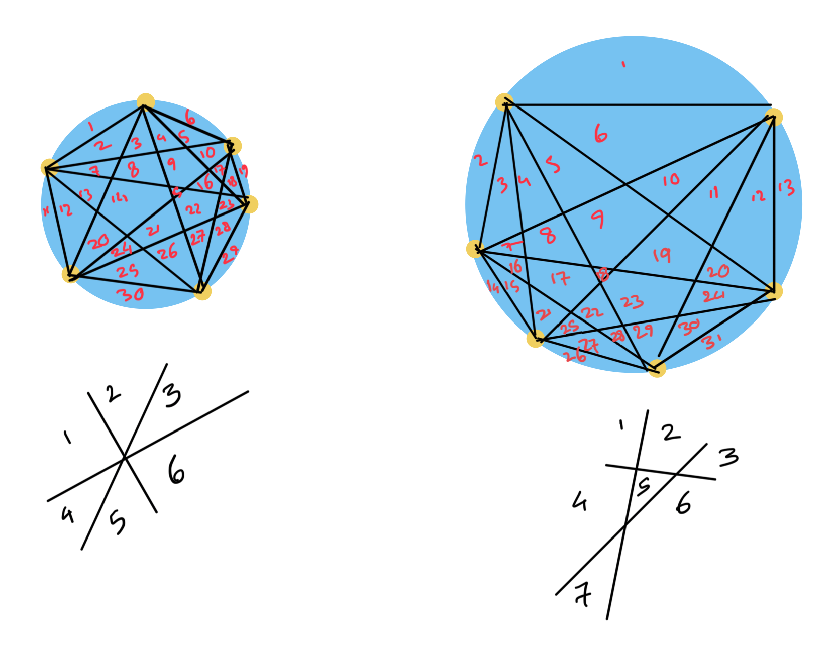 So why did the pattern break? The simple doubling pattern wasn’t connected to how the regions are made. A better way to count the regions is to understand what creates them. The number of regions is determined by the number of parts the circle and the lines are divided into.
